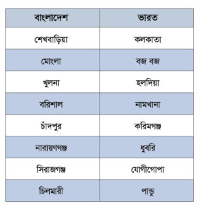 ১. কলকাতা-রায়মঙ্গল-খুলনা-বরিশাল-চাঁদপুর- গোয়ালন্দ-সিরাজগঞ্জ-বাহাদুরাবাদ-চিলমারী-ধুবরি